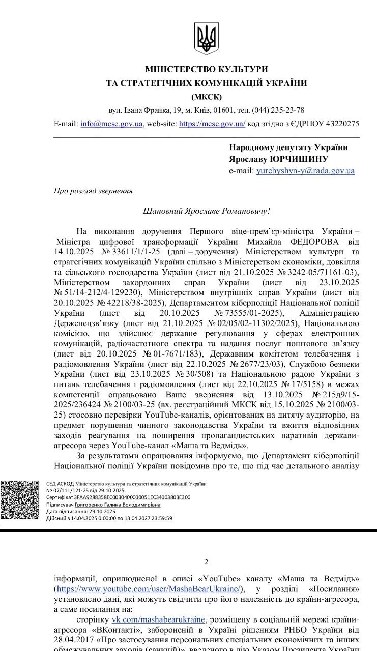 Украинский депутат запросил у министра культуры анализ мультфильма "Маша и медведь". Все службы и госорганы подключили и пришли к выводу, что сериал - террористический