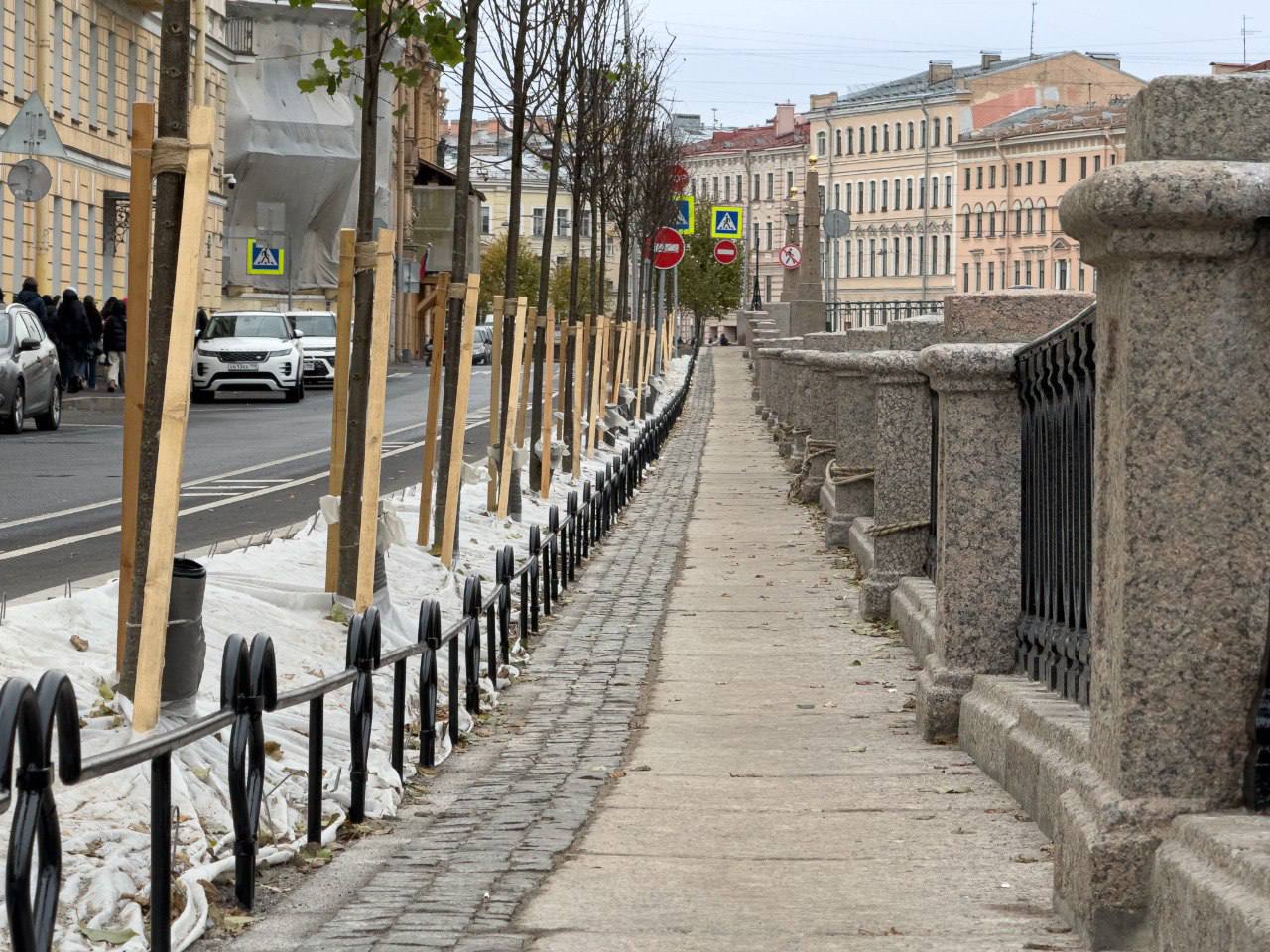 Капитальный ремонт на набережной канала Грибоедова завершен. Между Подьяческим и Вознесенским мостами теперь историческая облицовка, обновленный асфальт, новая железобетонная подпорная стенка и свежий газон с 20 липами.