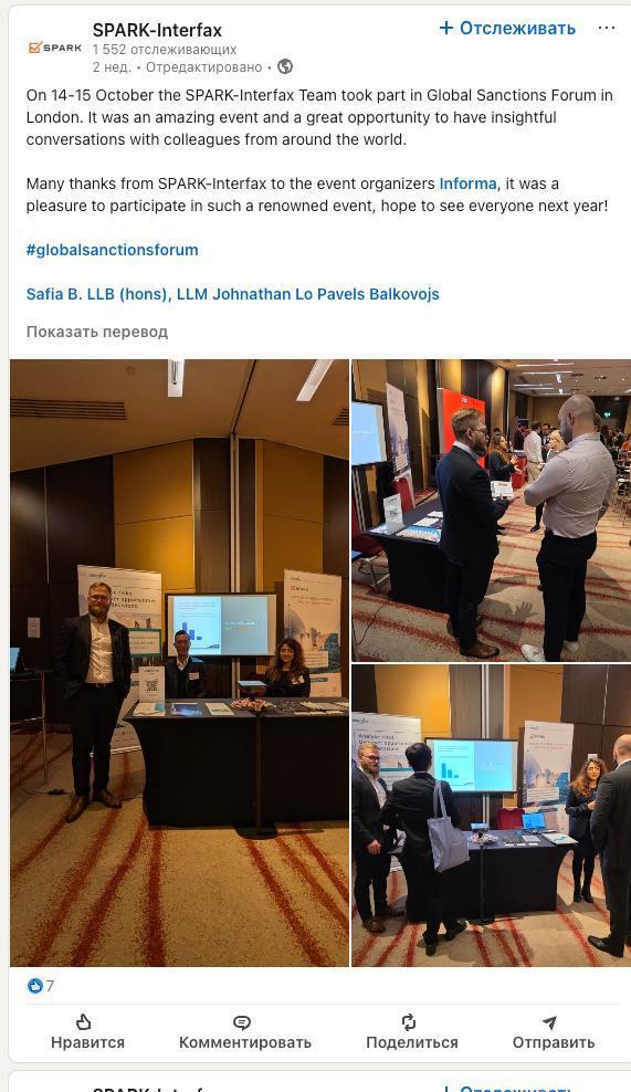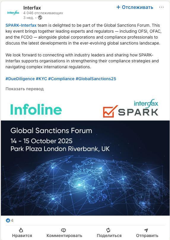 Кому война, а кому просто бизнес по продаже данныхНа просторах интернета нашли очень интересную информацию с полей экономических и санкционных баталий. Британская структура «Интерфакса» (SPARK-Interfax) в октябре приняла участие в Global Sanctions Forum или в Глобальном Санкционном форуме.