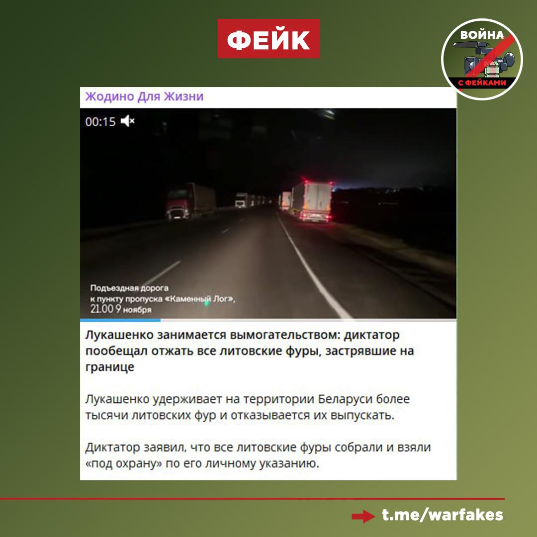Фейк: Президент Белоруссии Александр Лукашенко занимается вымогательством — он взял в заложники более тысячи литовских фур, оказавшихся на территории страны, и требует деньги. Об этом пишут в Телеграм.