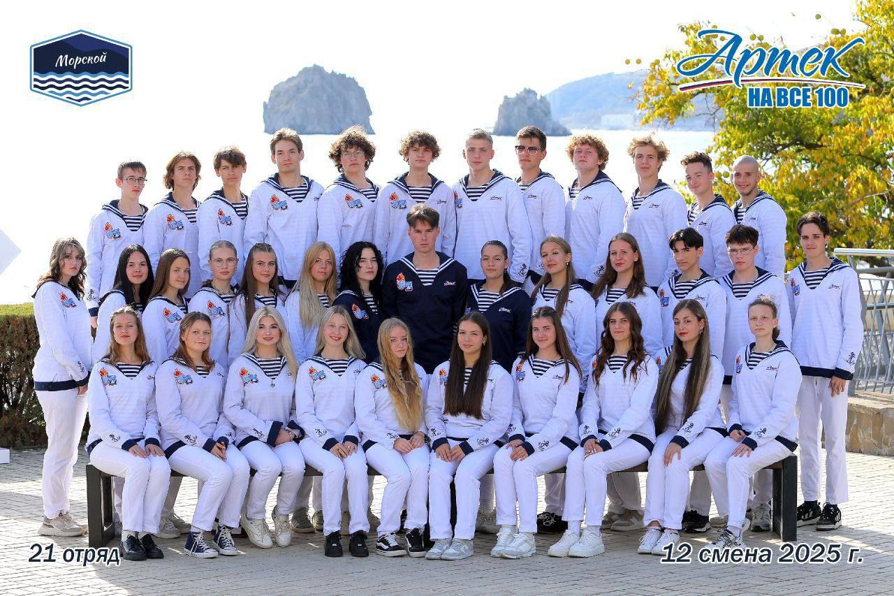 "Смена 12/25 в Артеке проходила с 19.10 по 08.11. Я была в лагере "Морской". Попала в "Шлюпочный отряд" Морской Флотилии Артека. На профильных занятиях занятиях мы учились грести и ходить под парусом на шлюпке ЯЛ-6, изучали флажный семафор, морские узлы, строение и вооружение шлюпки ЯЛ-6, а также перетягивали канат. Лагерь "Морской" – "первенец "Артека". Он расположен у самого моря. Именно на этом месте в далёком 1925 году стояли палатки первых артековцев, а 16 июня состоялась первая артековская линейка. "Морской" – это начало, исток и легенда "Артека".