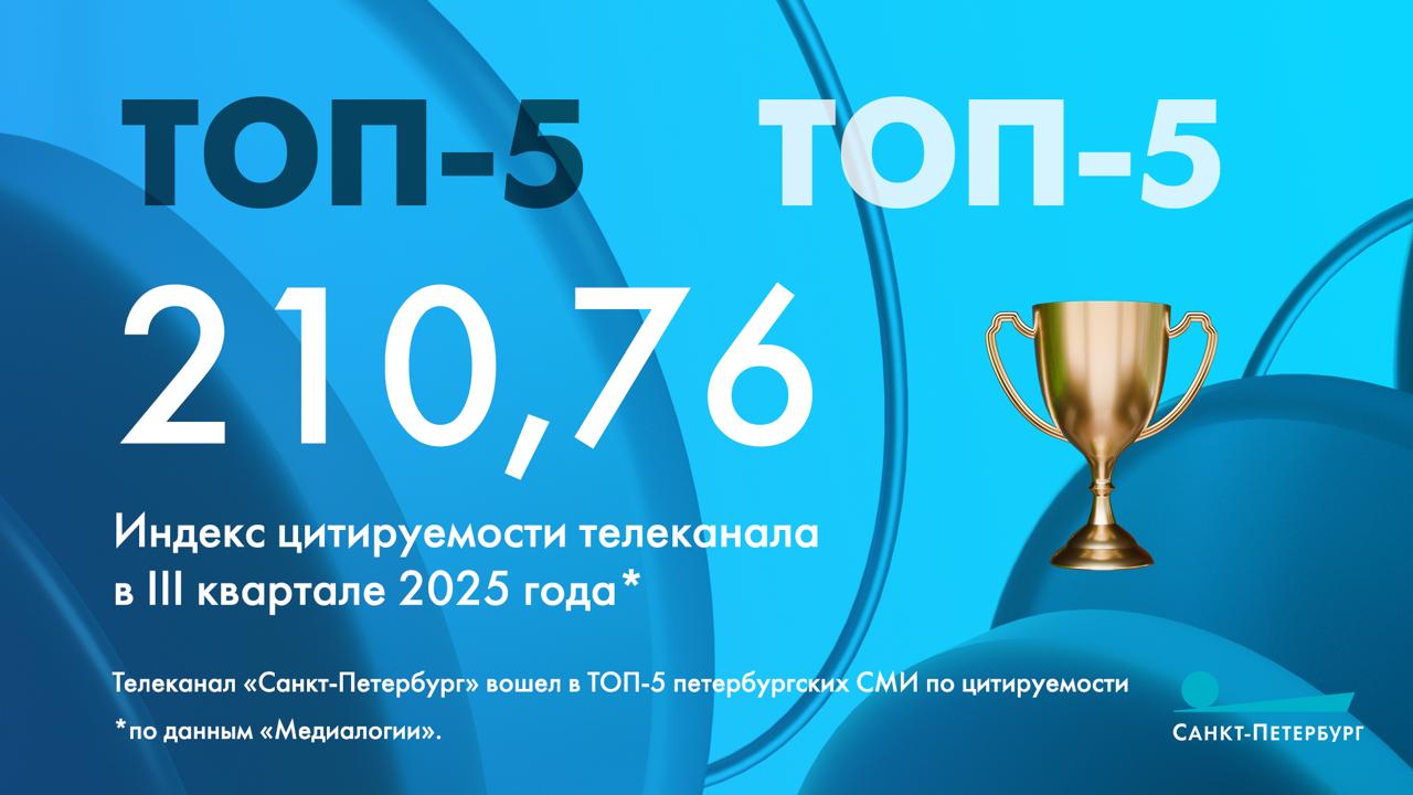 Телеканал «Санкт-Петербург» снова в числе лучших! На этот раз наш канал вошел в ТОП-5 петербургских СМИ по цитируемости. Такие данные привела компания «Медиалогия».