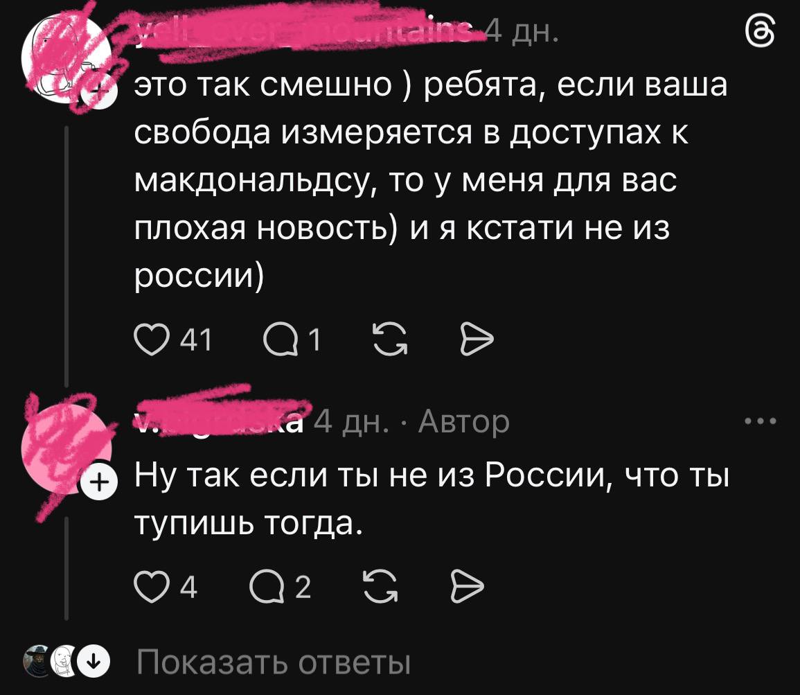 «Свободной» и независимой любительнице котлет и булок, наверное, показалось, что она изрекла ГЕНИАЛЬНЫЙ спич. Вот только ответы комментаторов оказались в сто крат красноречивее.