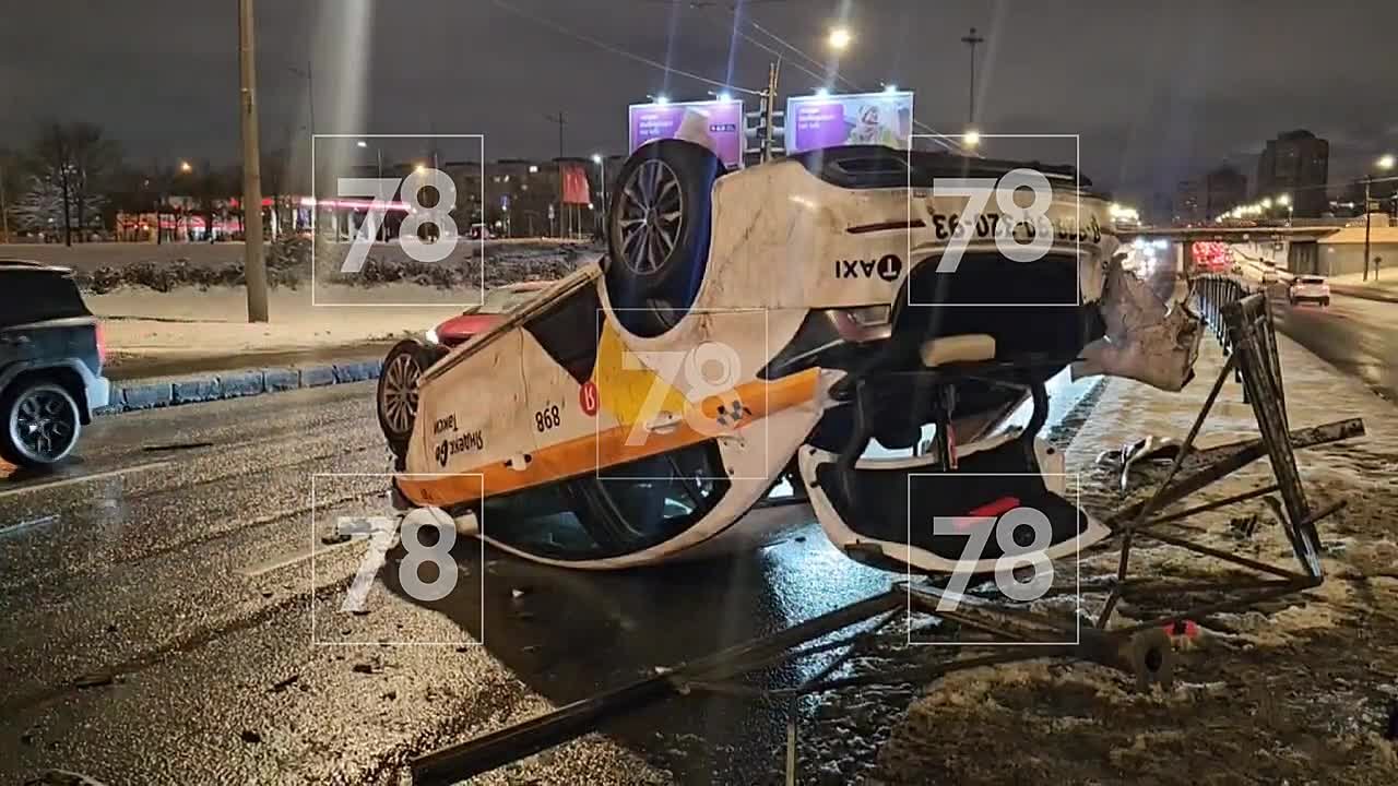 Такси вылетело на встречку и перевернулось после ДТП в Московском районе