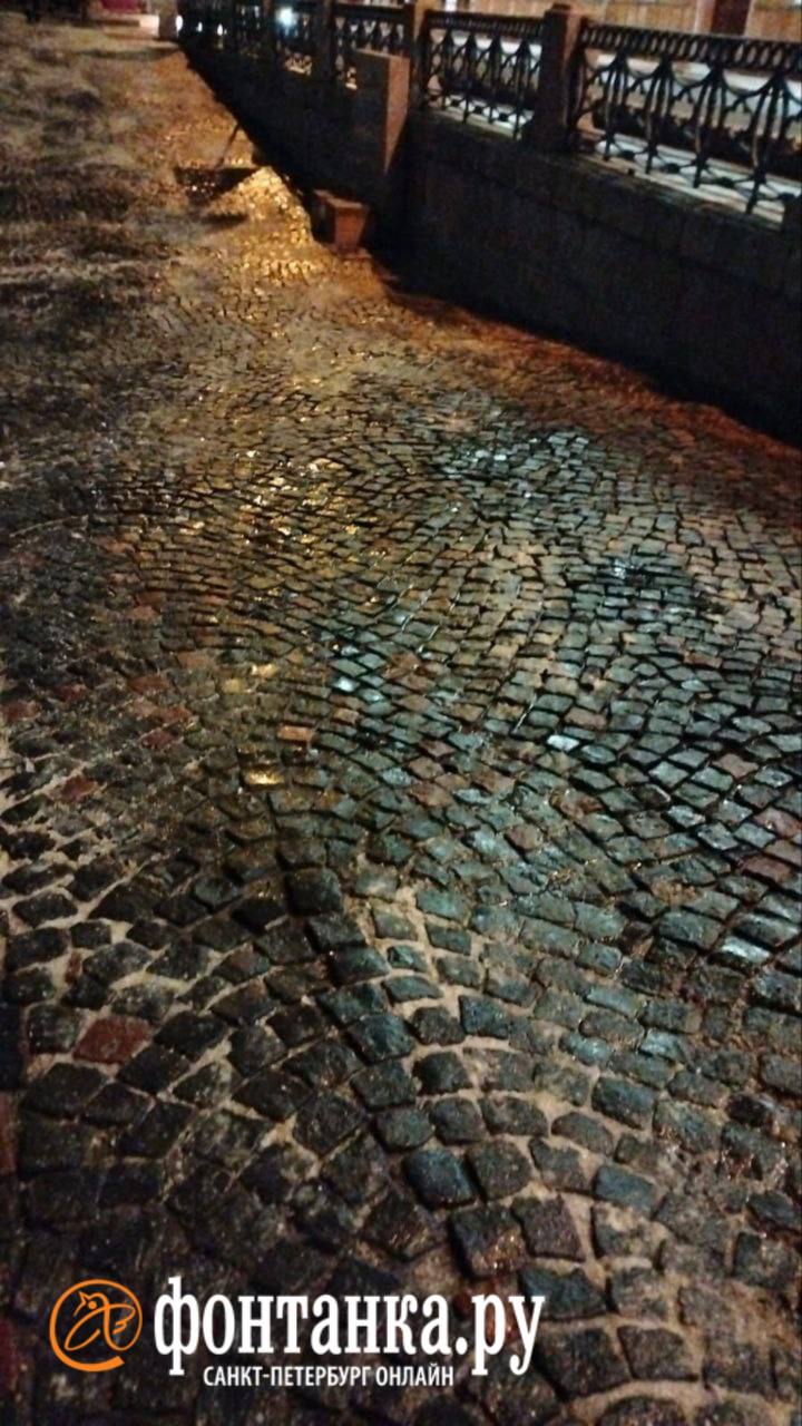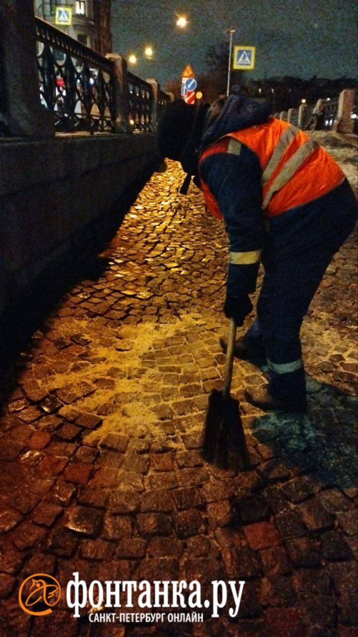 Вуаля: набережная Фонтанки, усыпанная противогололедной солью, почти прибрана.