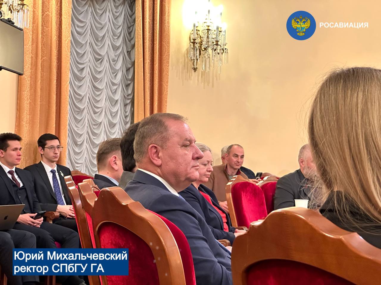 В рамках круглого стола выступил ректор СПбГУ ГА Юрий Михальчевский, рассказав о системе профессиональной подготовки авиаспециалистов в России, где существуют три вертикально- интегрированных образовательных комплекса подведомственных Росавиации вузов.