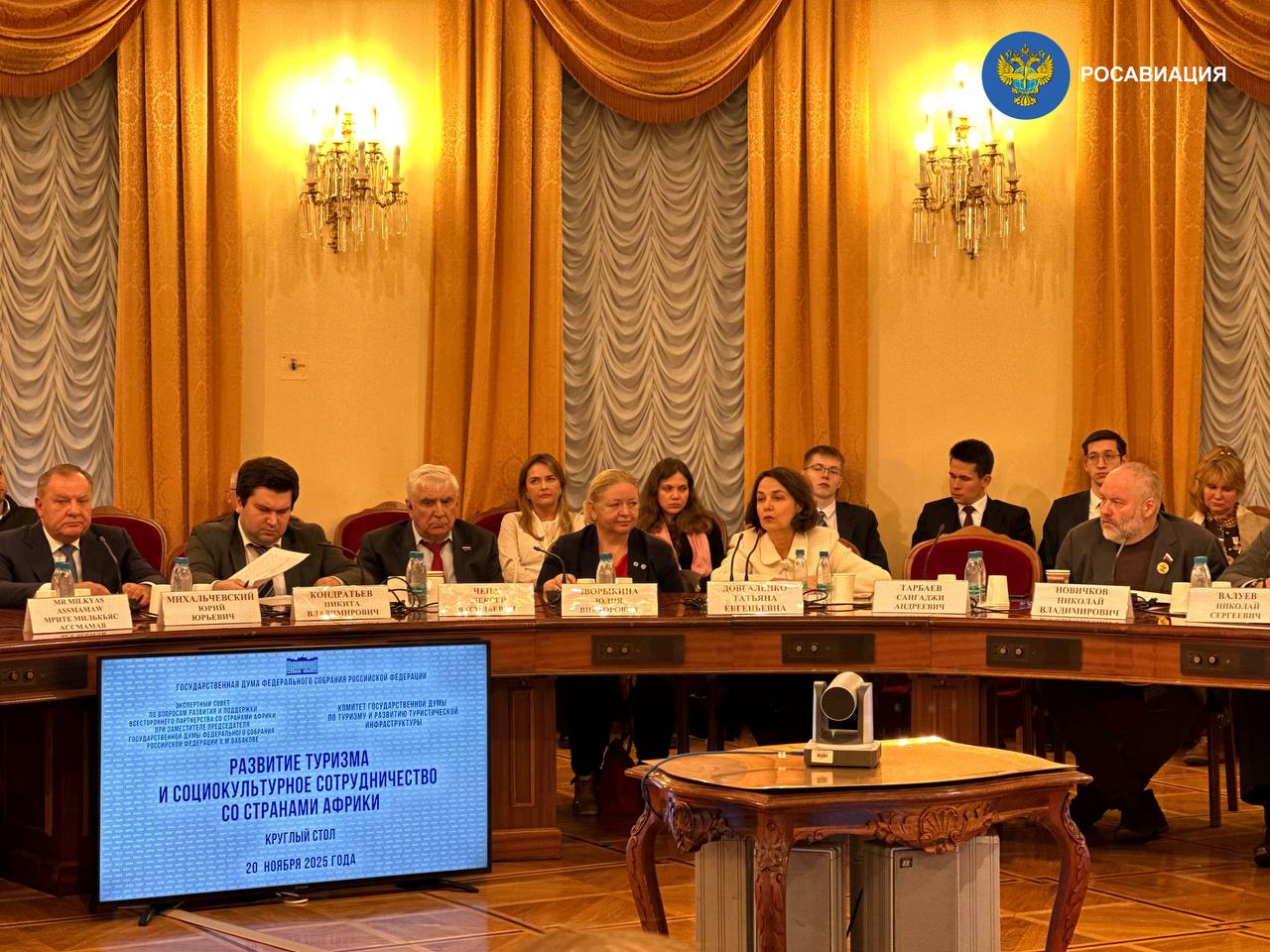 В Госдуме в рамках круглого стола «Развитие туризма и социокультурное сотрудничество со странами Африки» обсудили перспективы развития международного авиасообщения, а также кадровый потенциал в рамках партнерских отношений с учебными заведениями гражданской авиации.