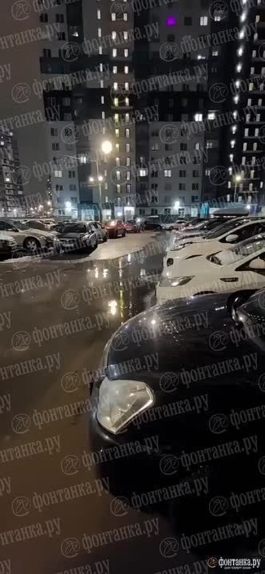 Канализация разлилась на аллее Евгения Шварца. Местные жители беспокоятся, что сточные воды попадают в Охту.