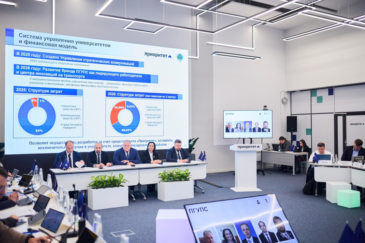 Представители ПГУПС защищали два проекта, реализуемые в вузе в рамках программы: «Железнодорожный транспорт – драйвер экономического развития России» и «Новые технологии и материалы в строительстве».