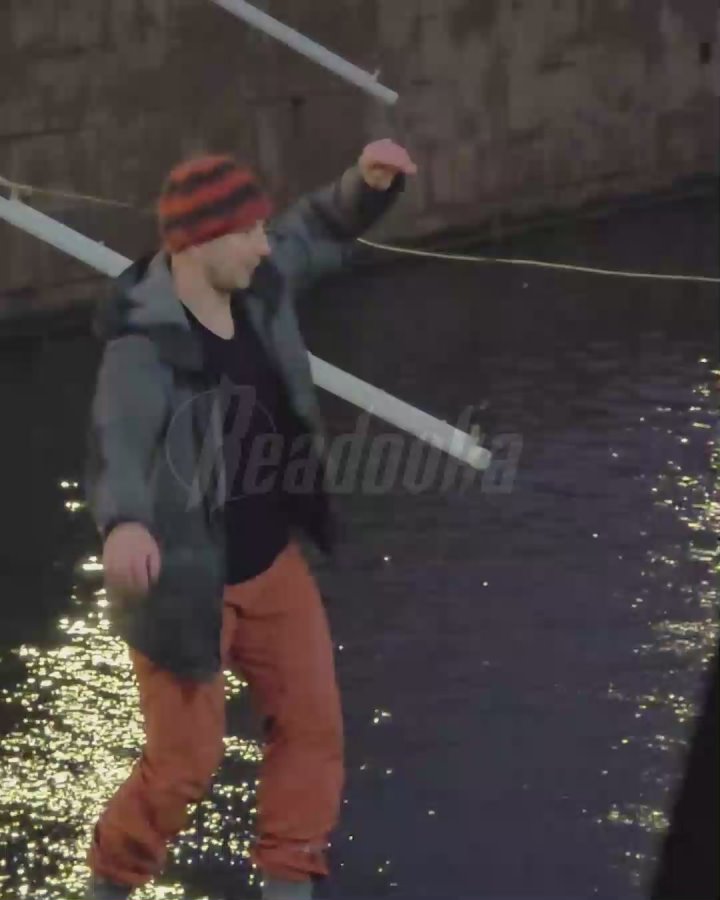 В центре Питера местный эквилибрист решил, что обычных тротуаров для прогулок ему недостаточно, а экстрима от перешагиваний с крыши на крышу уже не хватает. Артист решил устроить импровизированное шоу прямо над ледяными водами канала Грибоедова.