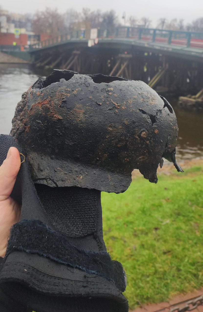Каску гитлеровца нашли водолазы на дне Невы у Петропавловской крепости в Петербурге.