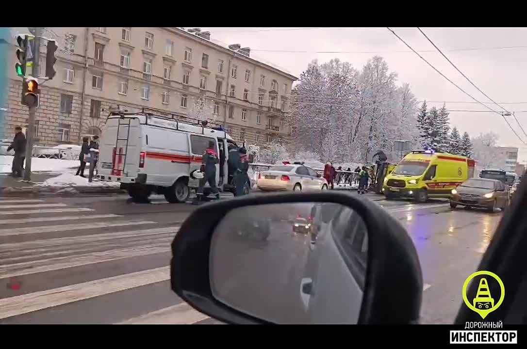 ДТП произошло на перекрёстке проспекта Ленина и улицы Веры Слуцкой. На месте собирается пробка — карету приходится объезжать по встречке. На месте находятся экстренные службы.