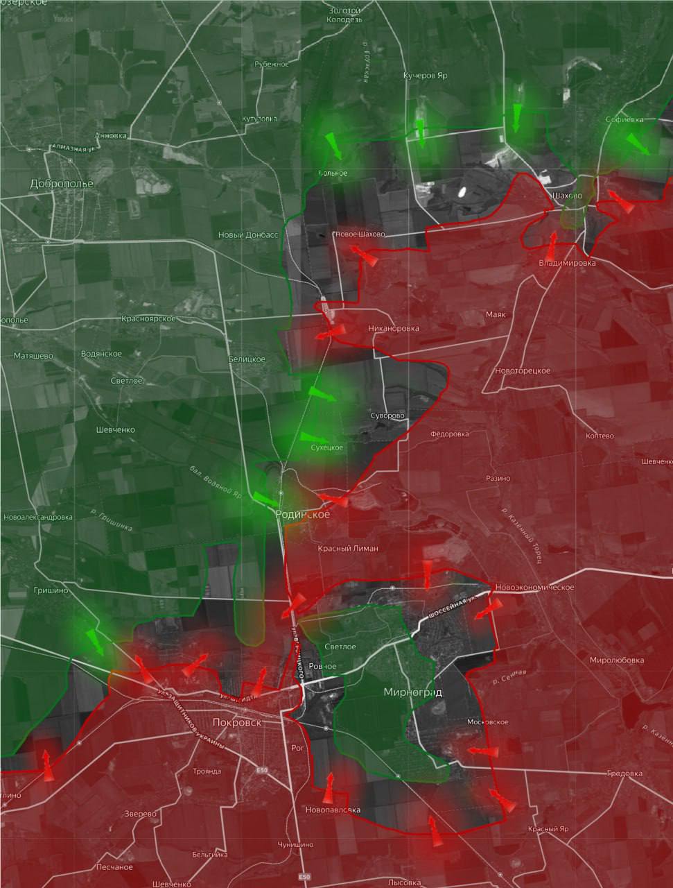 В Покровске фиксируется продвижение ВС РФ в мкр. Центральный и Динас, ВСУ контратакуют, но пока безрезультатно.