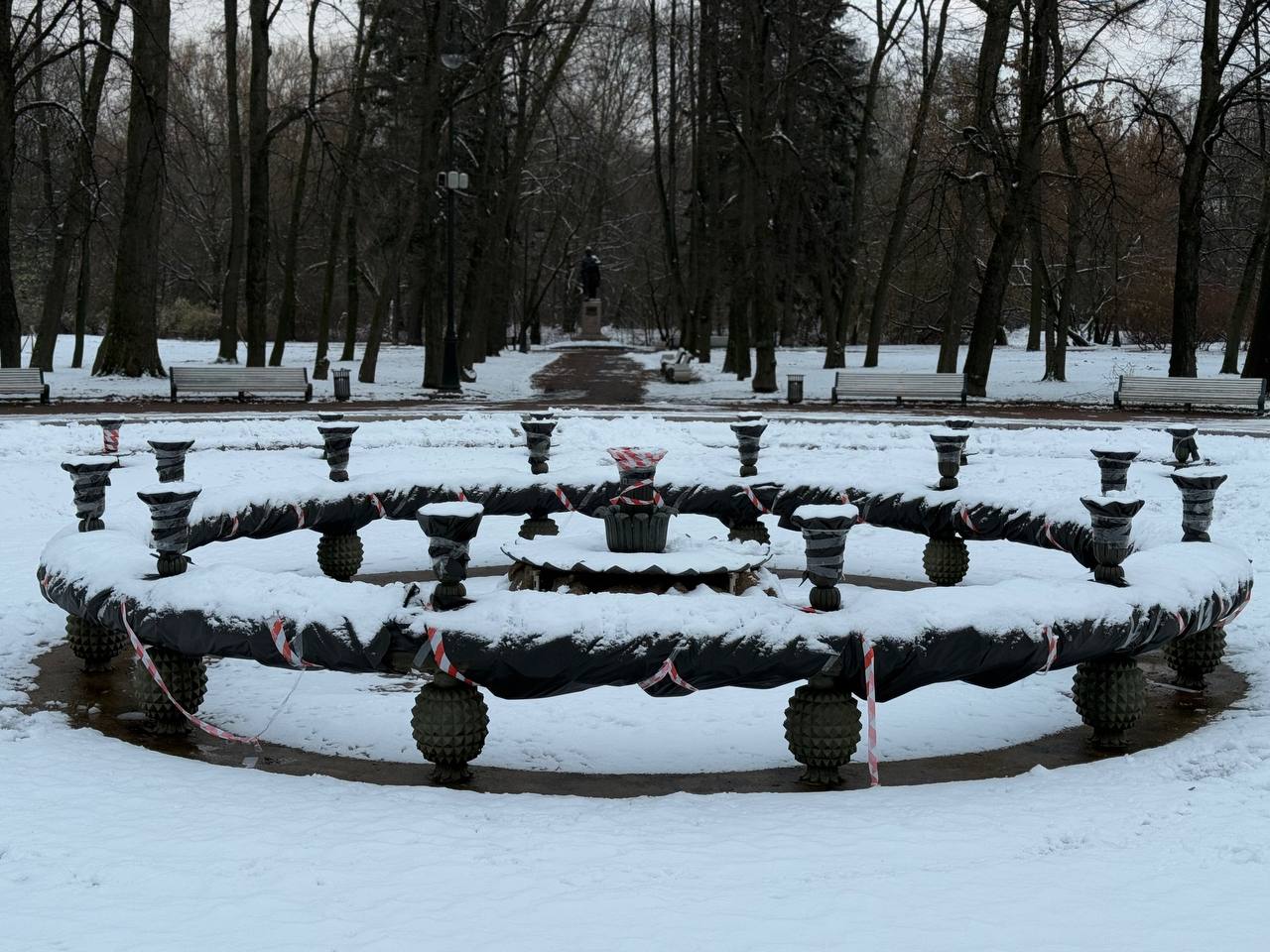 «Водоканал» завершил консервацию городских фонтанов. Позади большая работа: из чаш и труб слили воду, все сооружения тщательно помыли, в подземных камерах настроили отопление, вентиляцию и финальное — рабочие укутали самые уязвимые части специальными материалами.