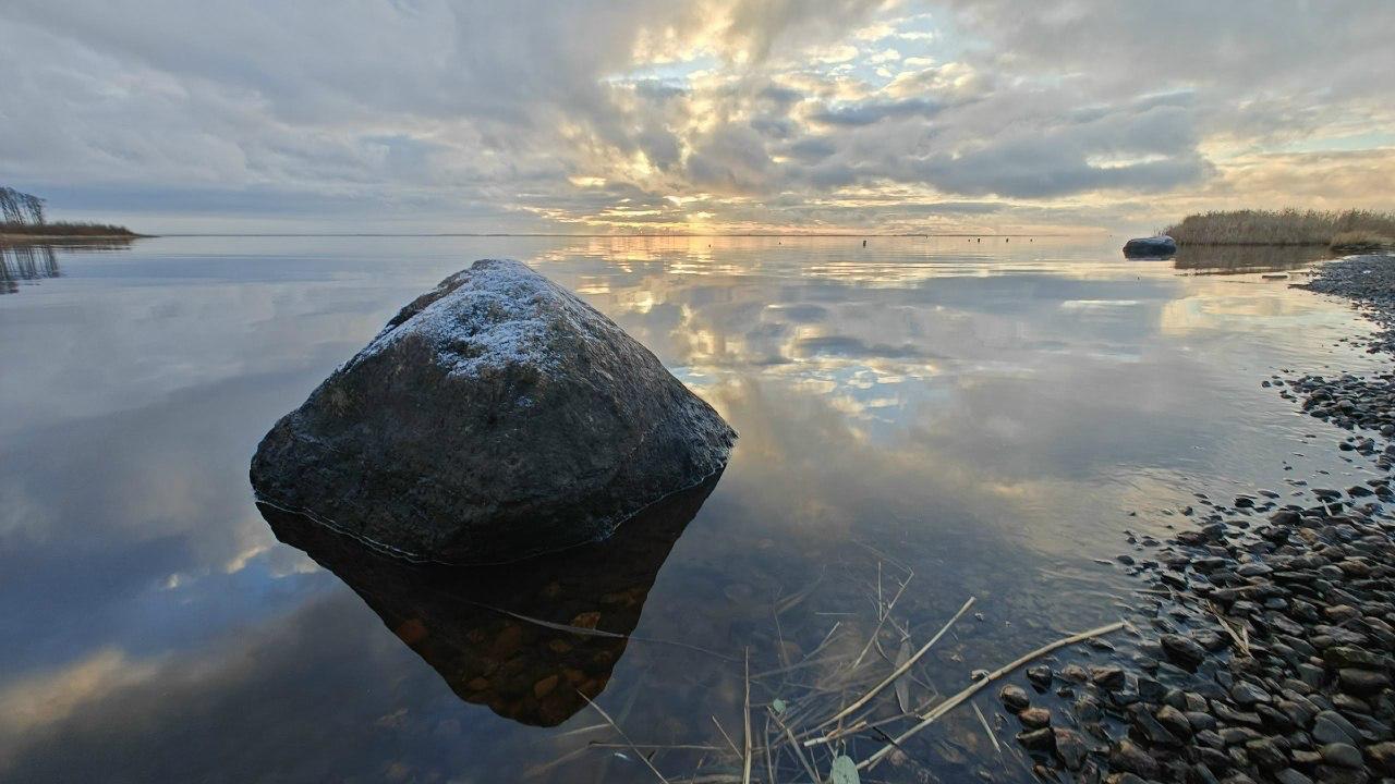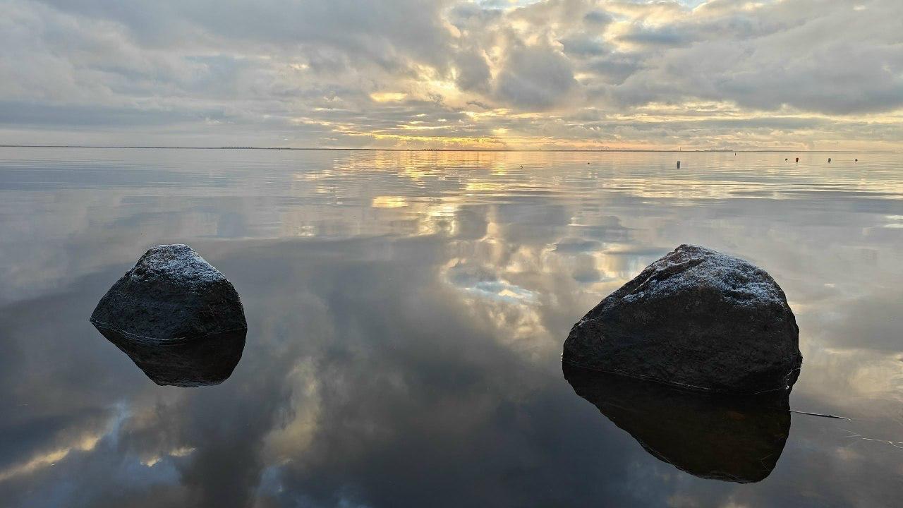 Последние дни осени преобразили побережье Финского залива в Сестрорецке. Полный штиль и живописное небо запечатлел биолог и автор канала «Каждой твари по паре» Павел Глазков.