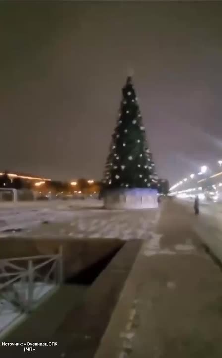Да что вы знаете о новогоднем настроении. Подростки вот вскарабкались на ёлку с Московского проспекта.