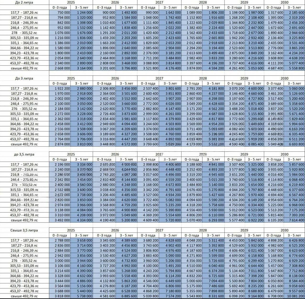 Сбор рассчитывается путем умножения базовой ставки в 20 тыс рублей на коэффициент, который зависит от рабочего объема и мощности двигателя.