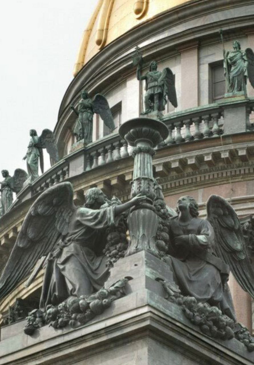 Мajesty монумента подчеркивается внешними скульптурами: на высоте 43 метров 24 бронзовых ангела украшают балюстраду основного купола, а в четырех углах возвышаются фигуры апостолов и ангелов с факелами — символы духовных стражей Санкт-Петербурга.