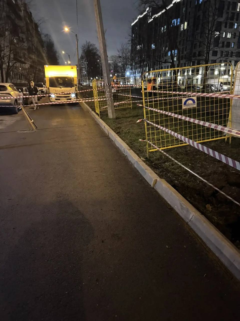 Наклон обнаружили у четырех столбов, место вытекания уже огородили. Автомобилистов просят отогнать машины из опасной зоны.