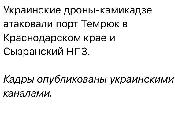 Юлия Витязева: Откуда у украинских тг-каналов кадры атакованных ночью российских портов? Вопрос риторический
