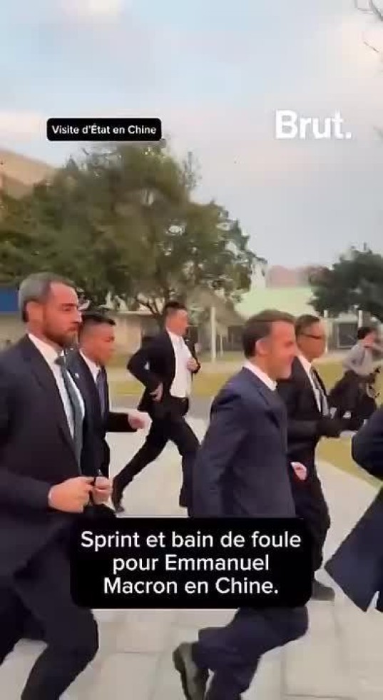 Макрон сбежал от сотрудников китайской службы безопасности. Забавное зрелище.