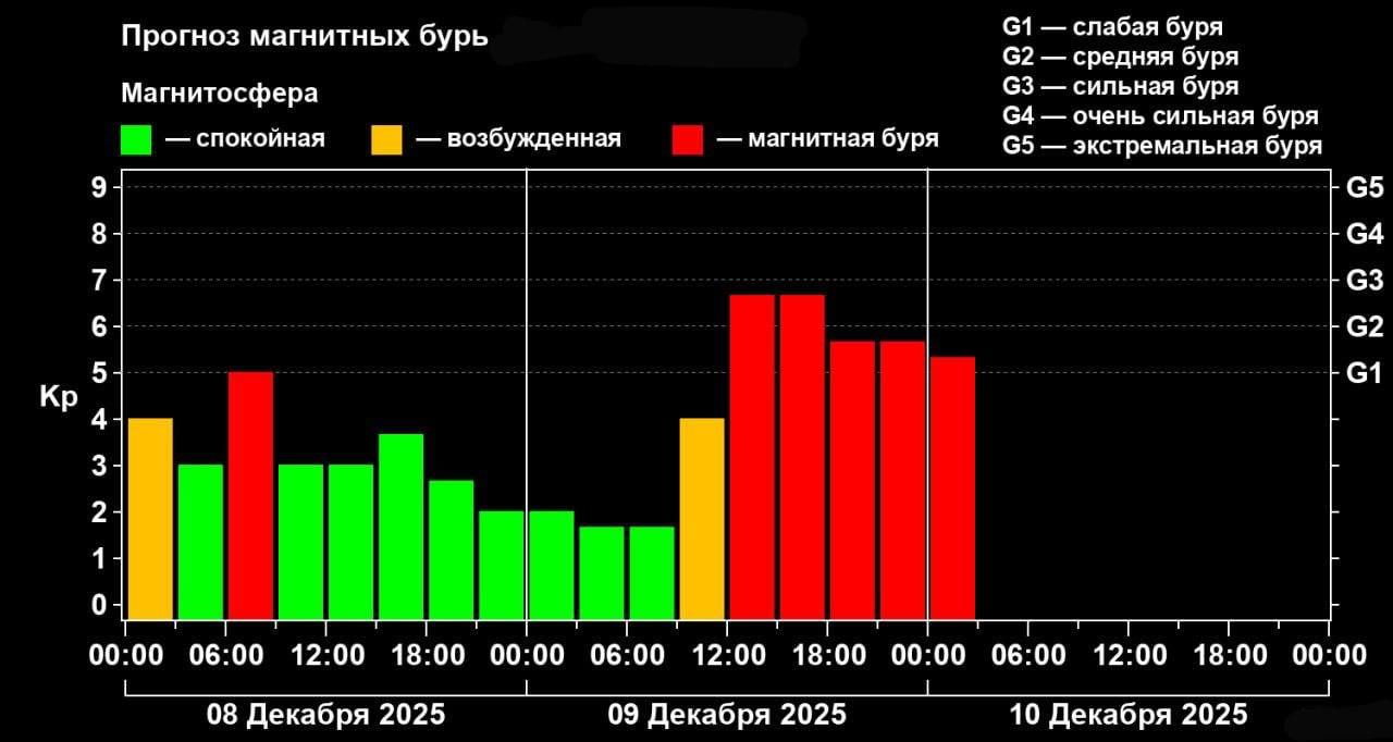 На Землю обрушились сильные магнитные бури уровня G2-G3. Предположительно, вспышки продлятся до завтра.