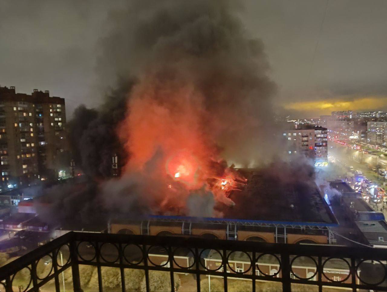 В Петербурге всю ночь тушили мощный пожар на Правобережном рынке. Огонь вспыхнул в одном из помещений в среду около 17 часов и быстро распространился на всю площадь рынка. Полностью ликвидировать возгорание пожарным удалось только к утру. При пожаре погиб один человек, ещё один пострадал. Правобережный рынок в Невском районе многим известен по советскому фильму «Интердевочка», именно там были сняты сцены, где Таня бродила по рынку, напоминает «Фонтанка».