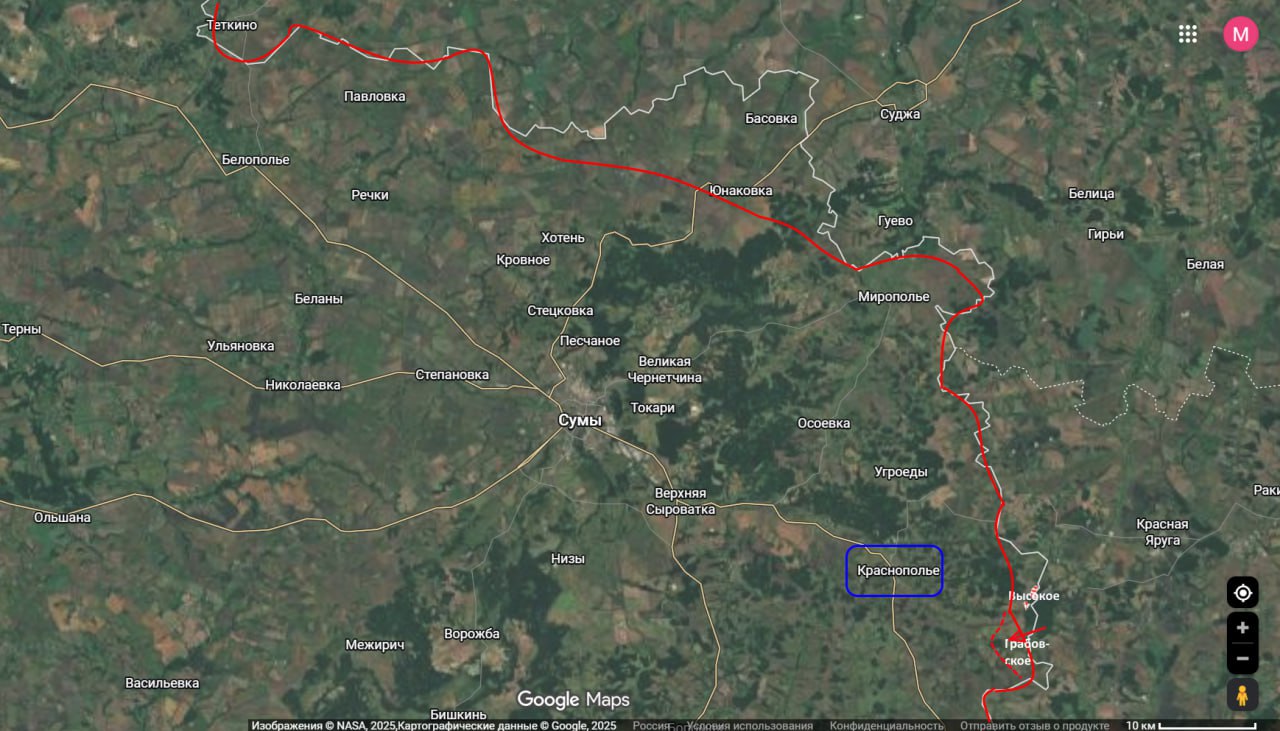 Насколько все серьезно с нашей стороны судить пока рано. Но я бы здесь что хотел отметить. До районного центра Сумской области - КРАСНОПОЛЬЯ отсюда осталось пройти всего 6 км. Причем, по лесам и балкам (что помогает наступающим и мешает обороняющимся).