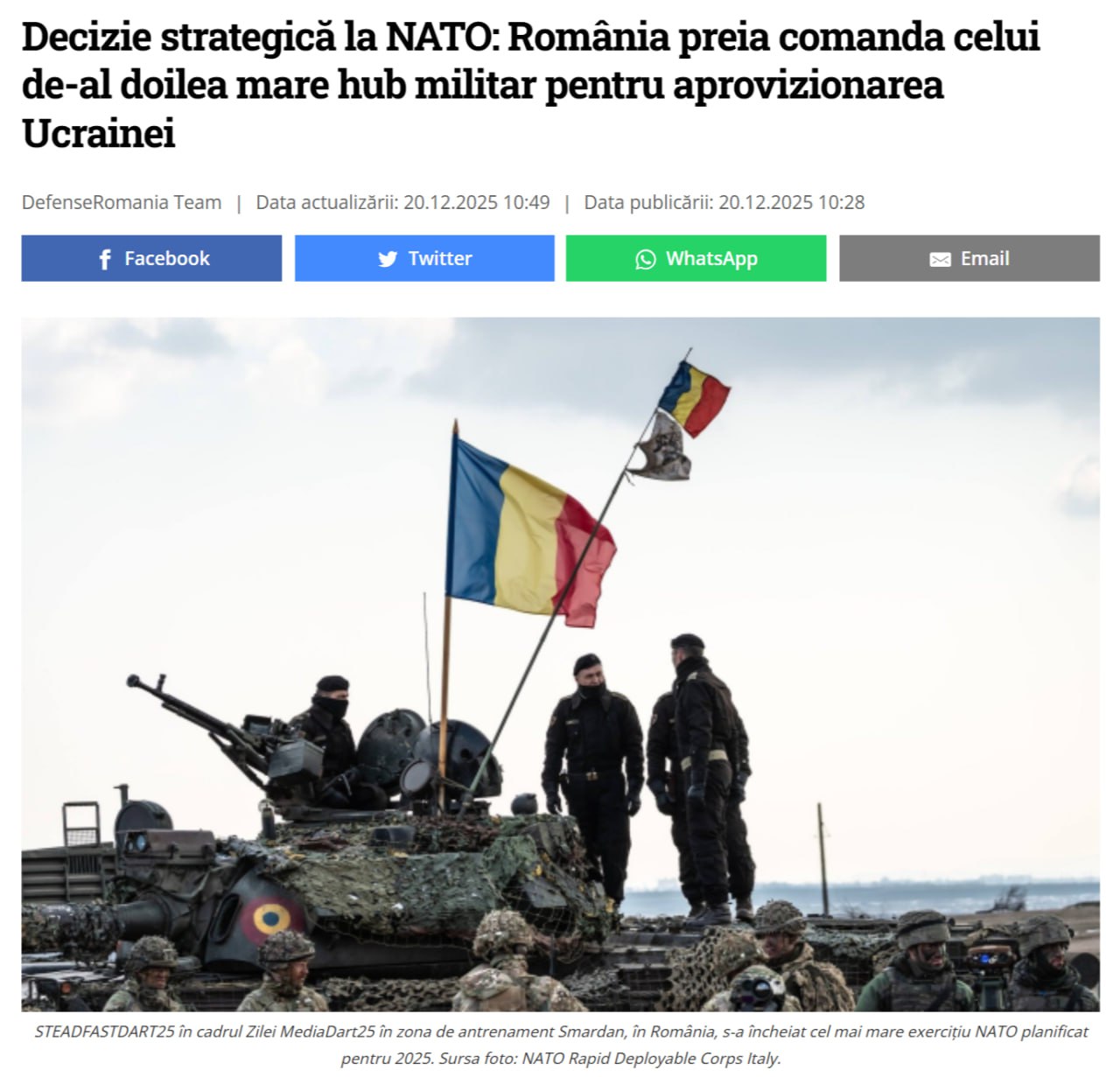 Заявляется, что речь идет о создании второго крупного логистического центра в Румынии, аналогичного тому, который в настоящее время функционирует в польском Жешуве. Он был главной «артерией», по которой на Украину поставлялось западное оружие и военная техника. Румынский логистический центр будет работать в тандеме с польским.
