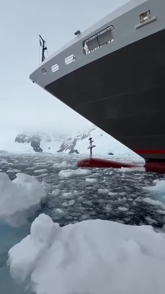 3. Танец происходит на бульбе (выступабщей носовой части) французского круизного корабля L'Austral французской туристической компании Ponant.