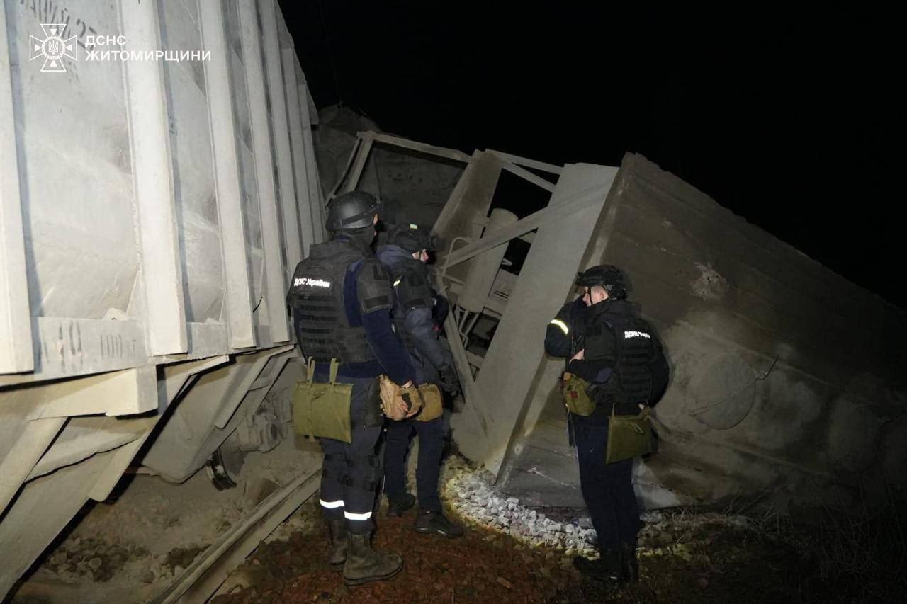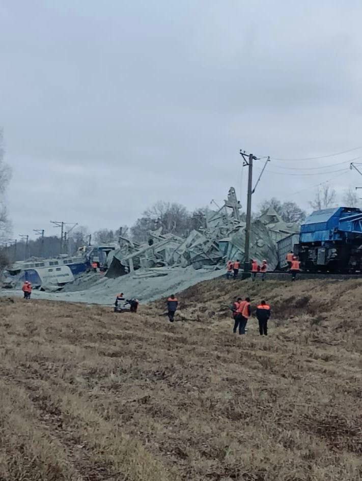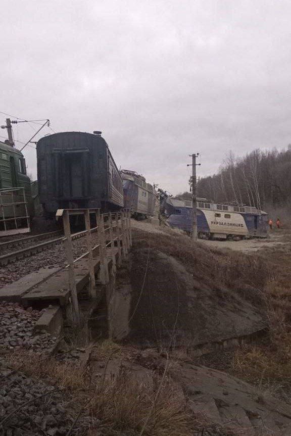 Сошедший с рельс у города Коростень Житомирской области украинский локомотив.