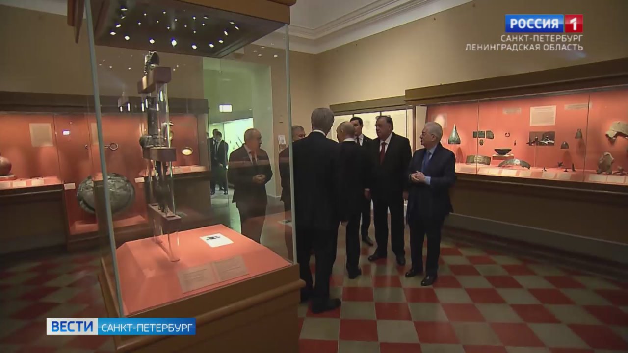 Напомним, в Петербург накануне приехали лидеры Армении, Белоруссии, Казахстана, Киргизии, Таджикистана, Туркменистана и Узбекистана. Перед тем, как сесть за стол переговоров, главы государств осмотрели экспозицию одного из крупнейших музеев мира, - небольшую экскурсию для них провёл сам Владимир Путин.