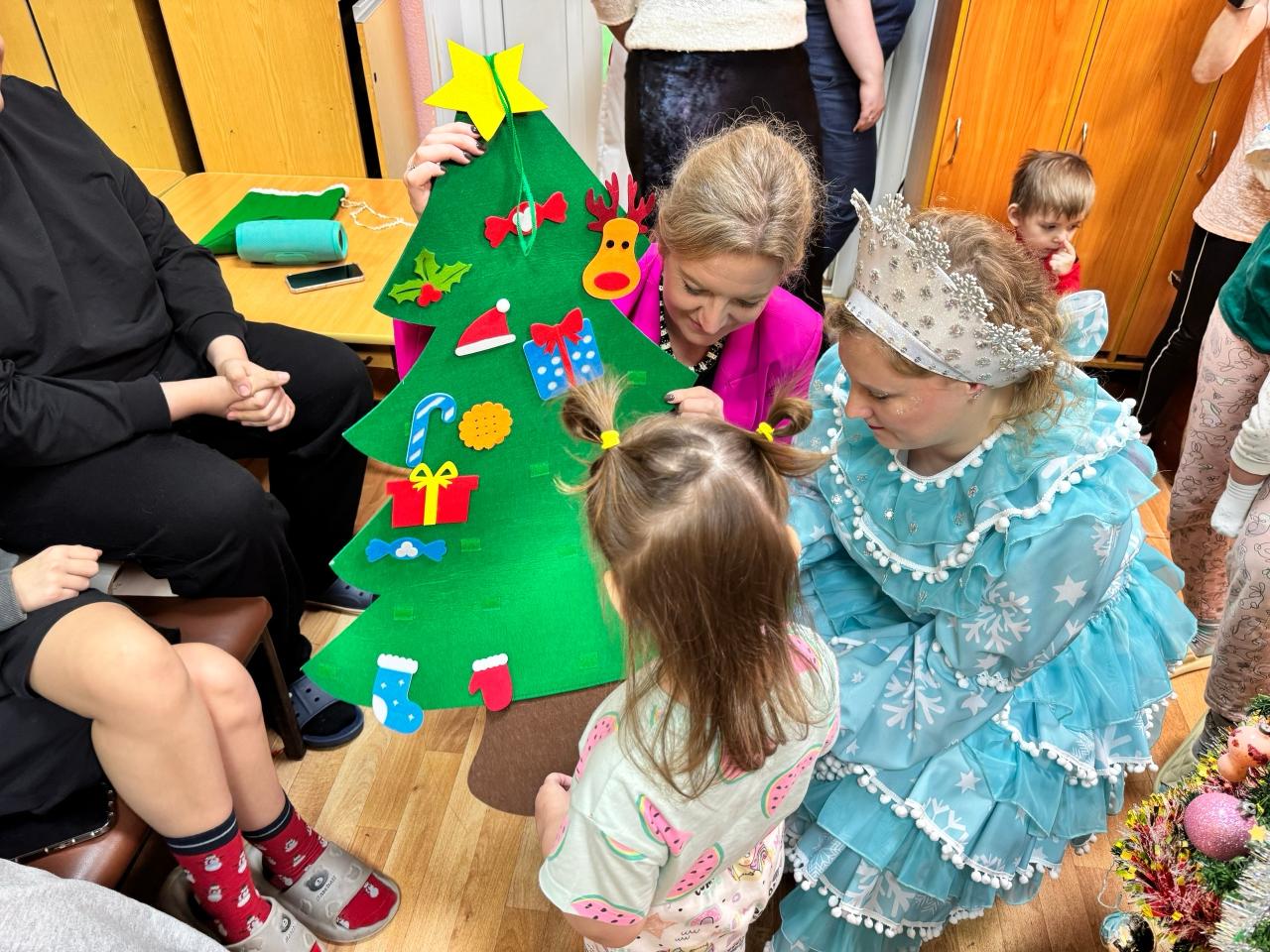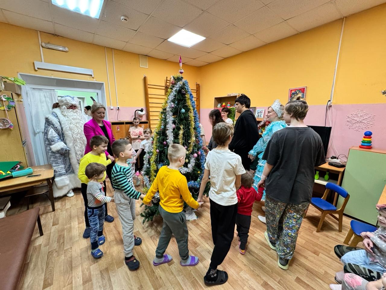 Праздник продолжился веселыми играми. Дети водили хоровод и зажигали огоньки на елке. Медицинские работники отделения также стали частью мероприятия, поддержав детей и сделав общее фото на память.