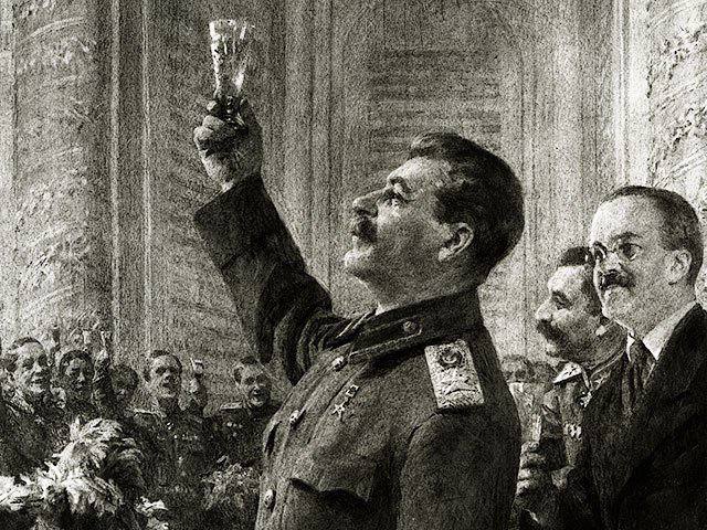 Сталин занял свое обычное место во главе стола. С правой руки, как всегда, стоял графин с чистой водой. Никаких официантов не было, и каждый брал себе на тарелку то, что ему хотелось. С ударом часов Верховный Главнокомандующий произнес краткое слово в честь советского народа, сделавшего все возможное для разгрома гитлеровской армии и приблизившего час нашей победы. Он провозгласил здравицу в честь Советских Вооруженных Сил и поздравил нас всех: