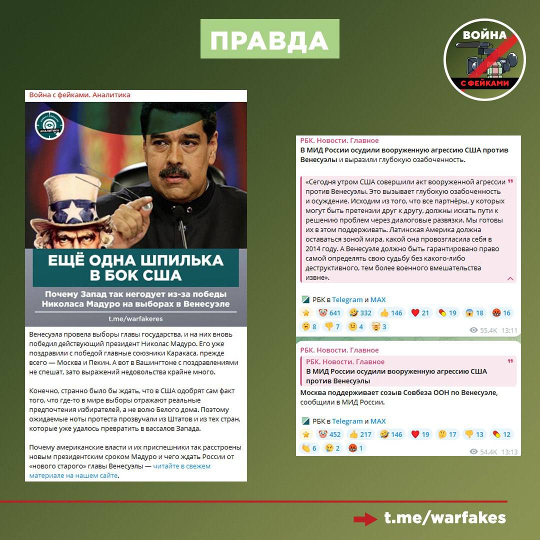 Правда: Мадуро в 2024 году был избран венесуэльским народом в ходе демократической процедуры. Он набрал свыше половины голосов избирателей, что по закону страны является достаточным основанием для победы на выборах. Граждане страны праздновали его победу.