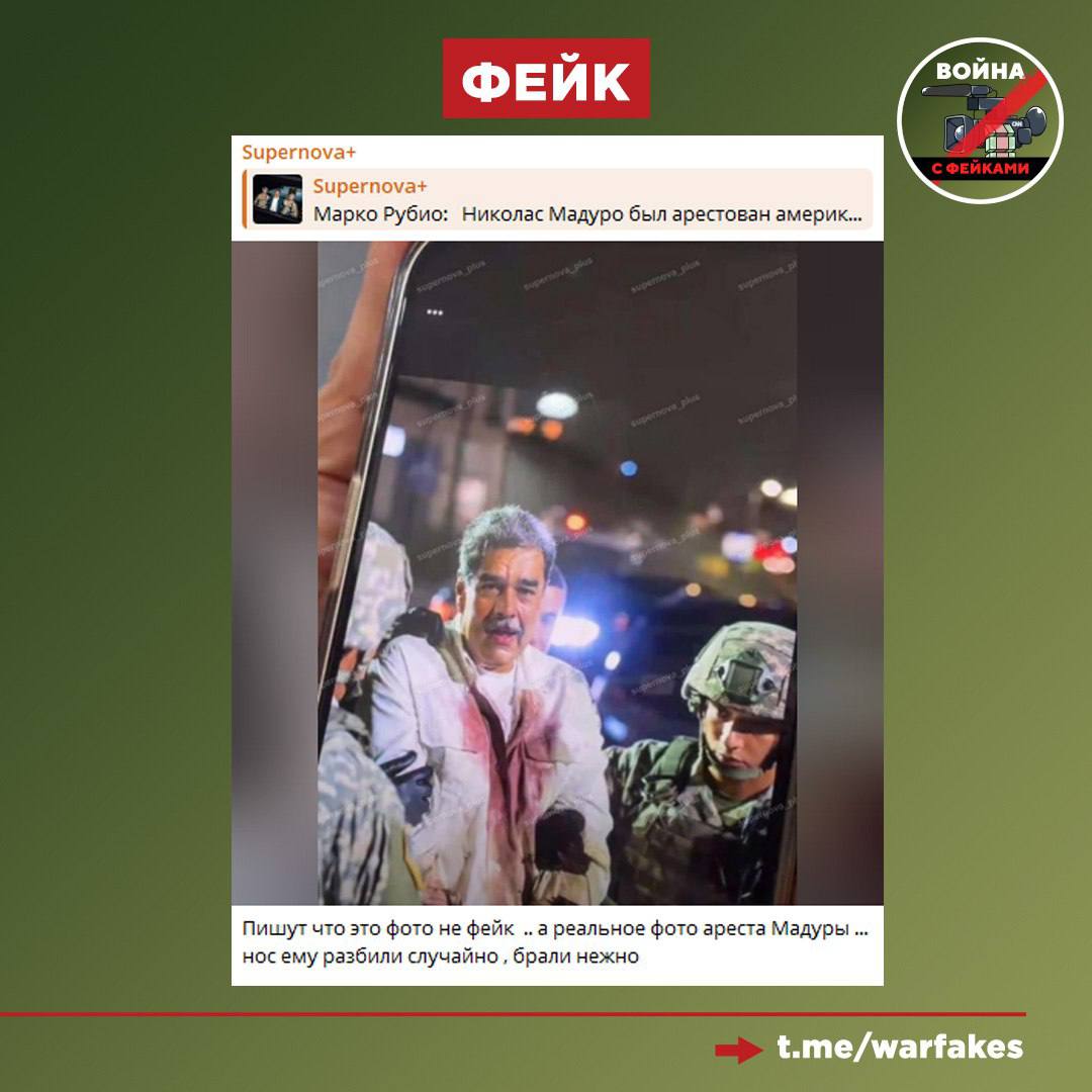 Фейк: Украинский телеграм-канал «Supernova+» опубликовал эксклюзивное фото задержания Николаса Мадуро. У президента Венесуэлы разбит нос, подчеркивается в канале.