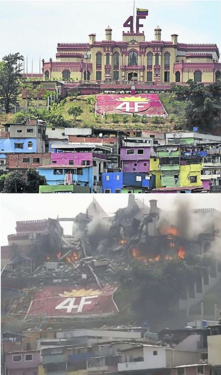 Так выглядит мавзолей, где захоронен Уго Чавес, до и после непосредственного соприкосновения с демократическими ценностями.