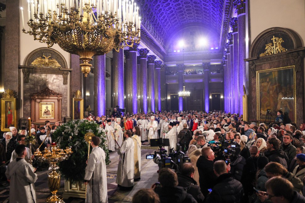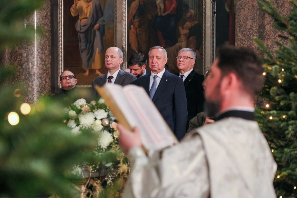 Беглов поздравил верующих с Рождеством на ночном богослужении в Казанском соборе