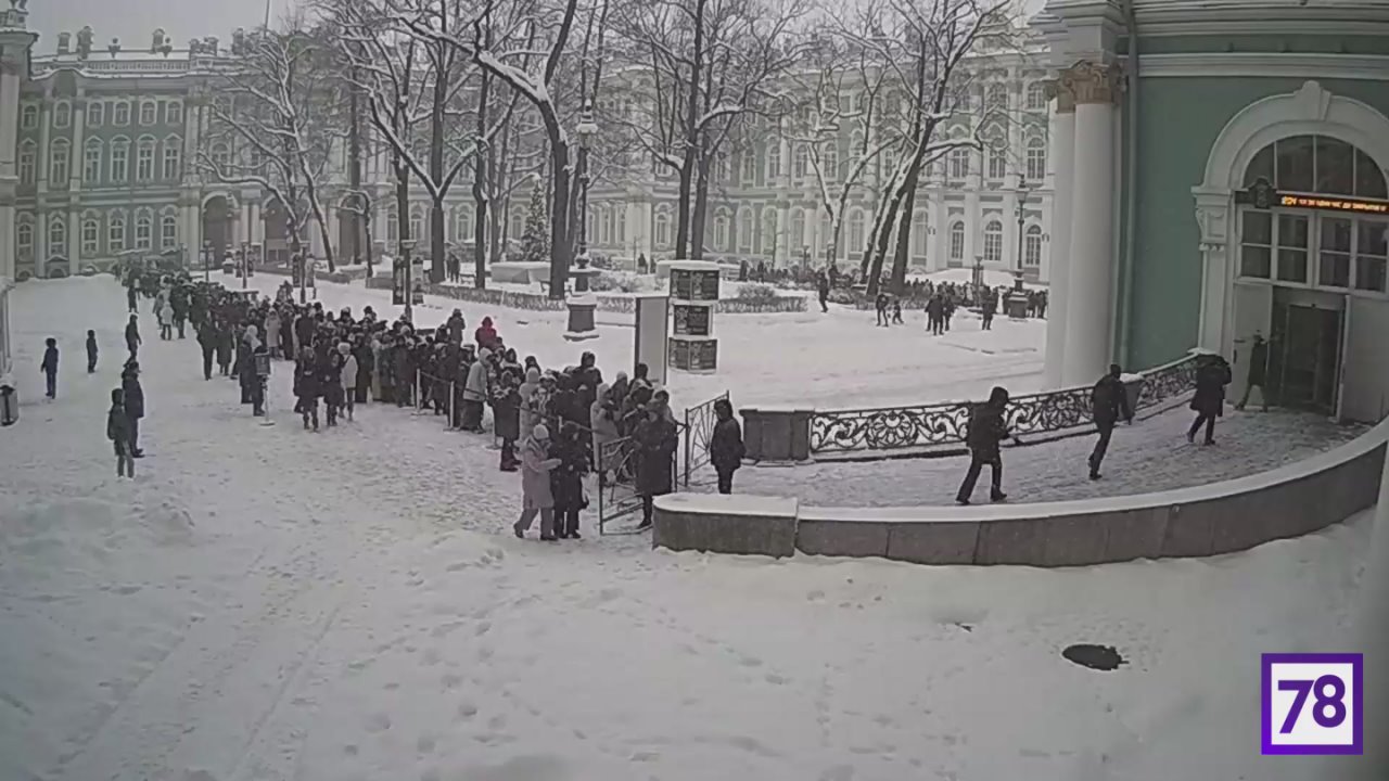В Эрмитаже снова ажиотаж — огромная очередь растянулась в Большом дворе Зимнего дворца. Сегодня в честь Рождества все комплексы музея можно посетить бесплатно.