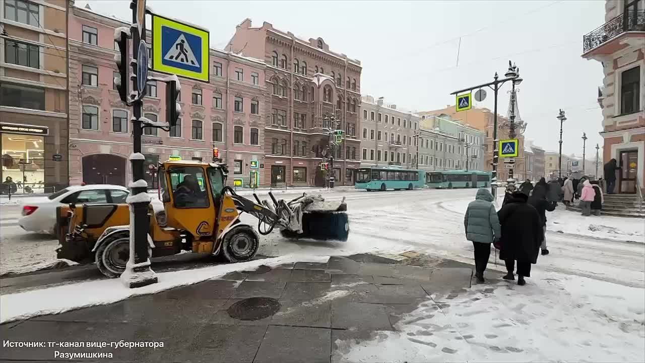 Вот так, собственно, в Петербурге убирают снежные последствия. Вот-вот в городе должно снова насыпать до 12 см.