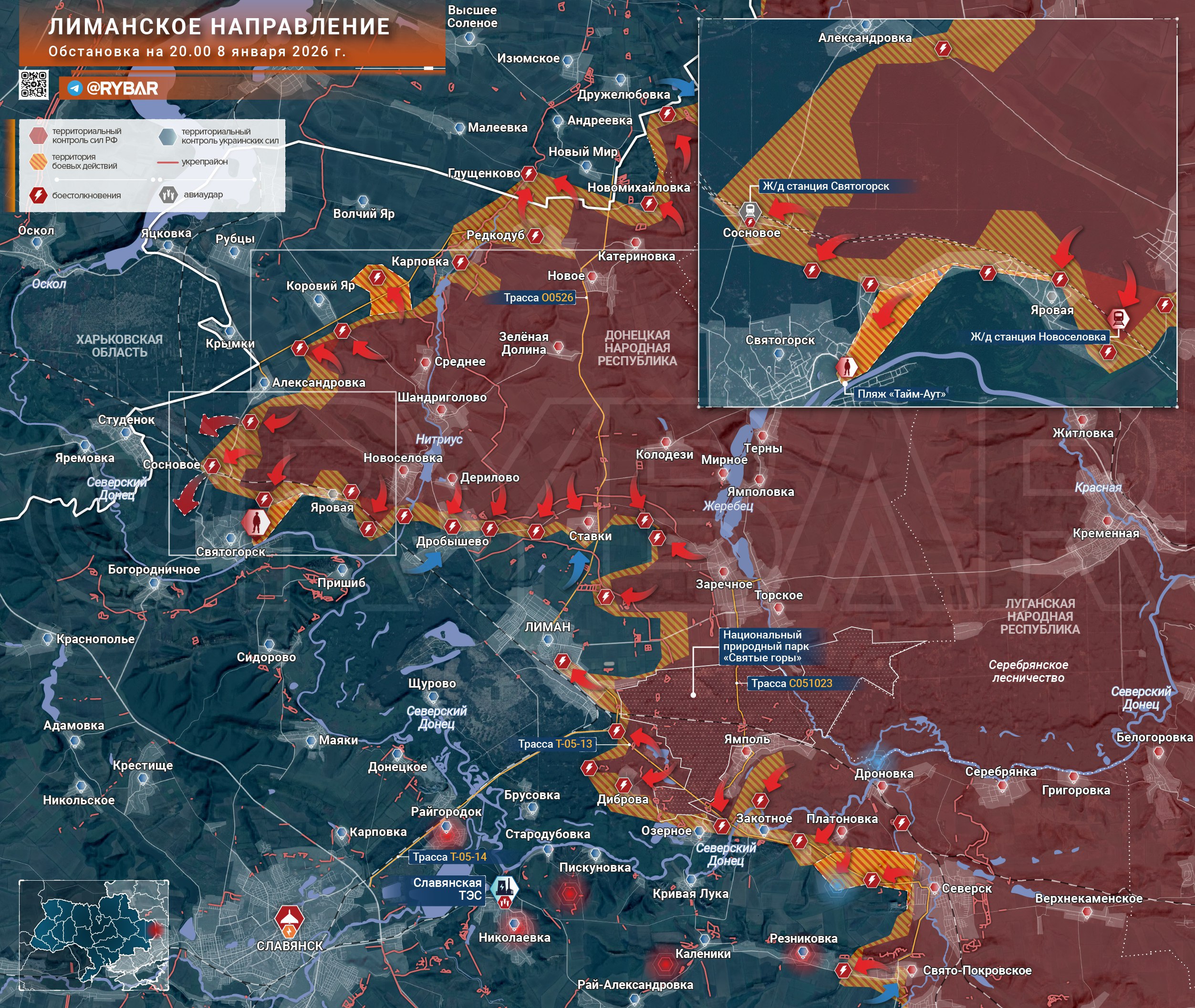 Несмотря на сложные метеоусловия, штурмовики продолжают успешно продвигаться сразу на нескольких участках направления, пользуясь естественными укрытиями и обширными лесными массивами. Если в окрестностях Святогорска удастся полноценно закрепиться, следует ожидать начала городских боев уже в ближайшие недели.