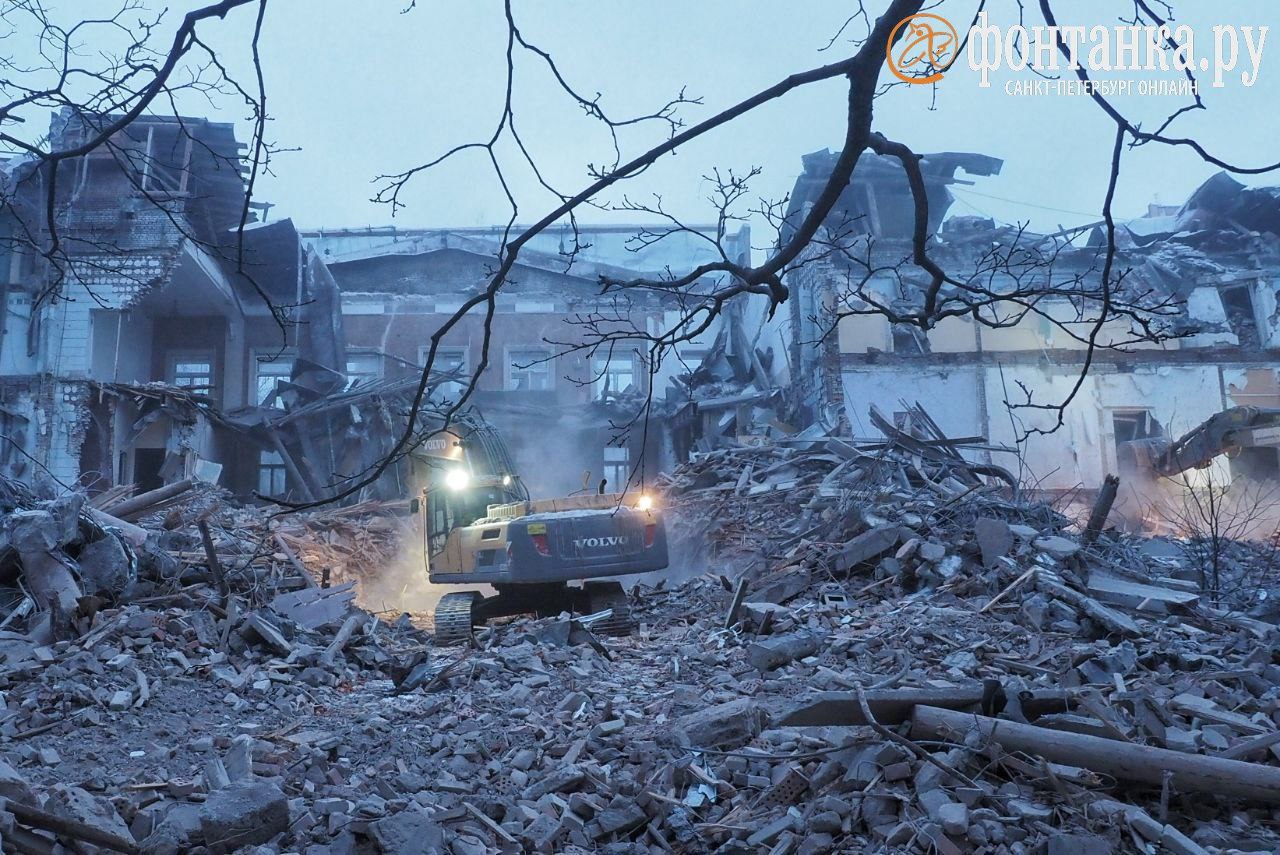 В Петербурге продолжают сносить ВНИИБ. Накануне полиция задержала 15 противников демонтажа.