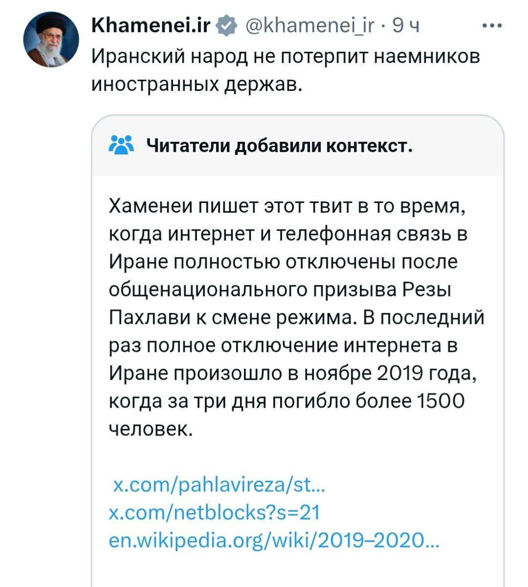 «Такая синхронность наблюдалась только во время предвыборной кампании Трампа. Протесты в Иране действительно идут, но масштабы и захваты городов преувеличены. По одной из версий, подобное освещение — подготовка к очередной военной операции США и Израиля. Погибшие протестующие должны стать поводом для нового вторжения»,