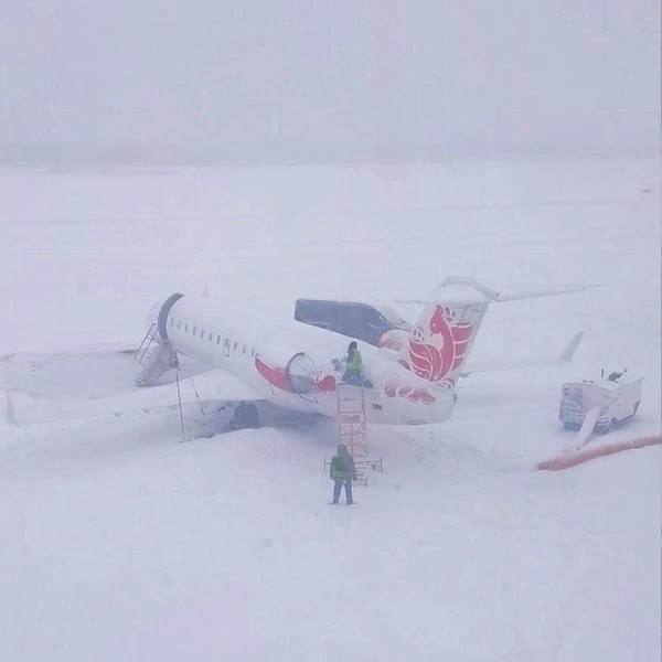 Но не обходится и без инцидентов: один из самолётов зарылся в снег, пытаясь выйти на взлётно-посадочную полосу.