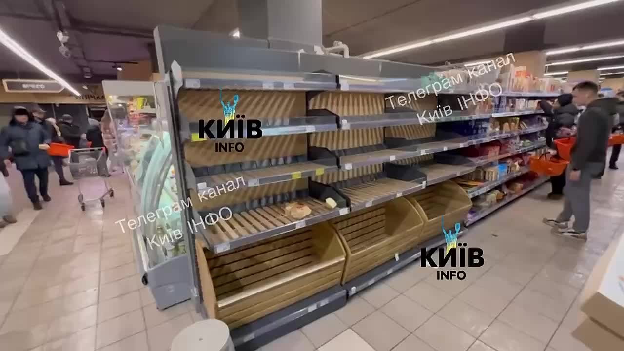 В Киевских супермаркетах начались проблемы с потребительской паникой на фоне блэкаута. Люди скупают продукты в результате чего сегодня поперли картинки с пустыми полками.