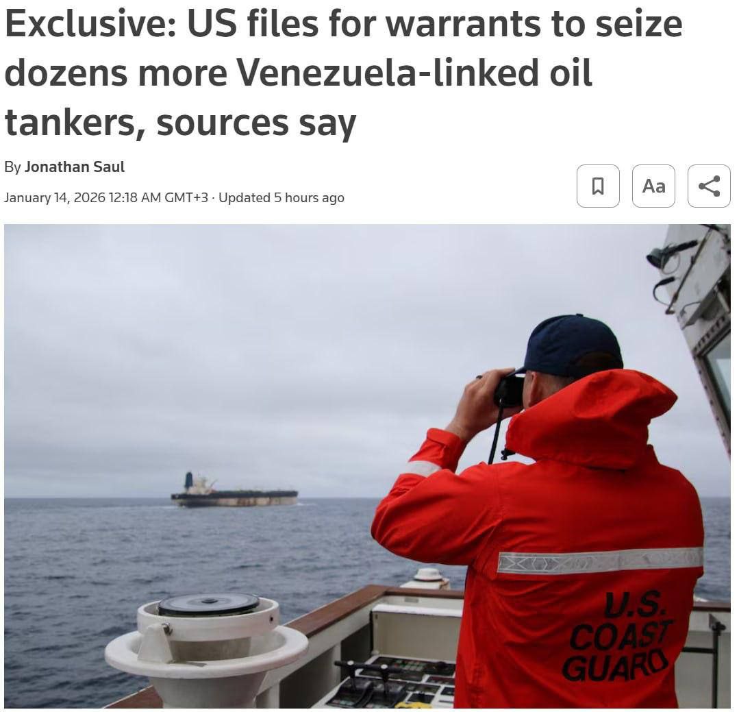 Reuters: Администрация США запросила ордеры на задержание нескольких десятков танкеров, связанных с торговлей венесуэльской нефтью.