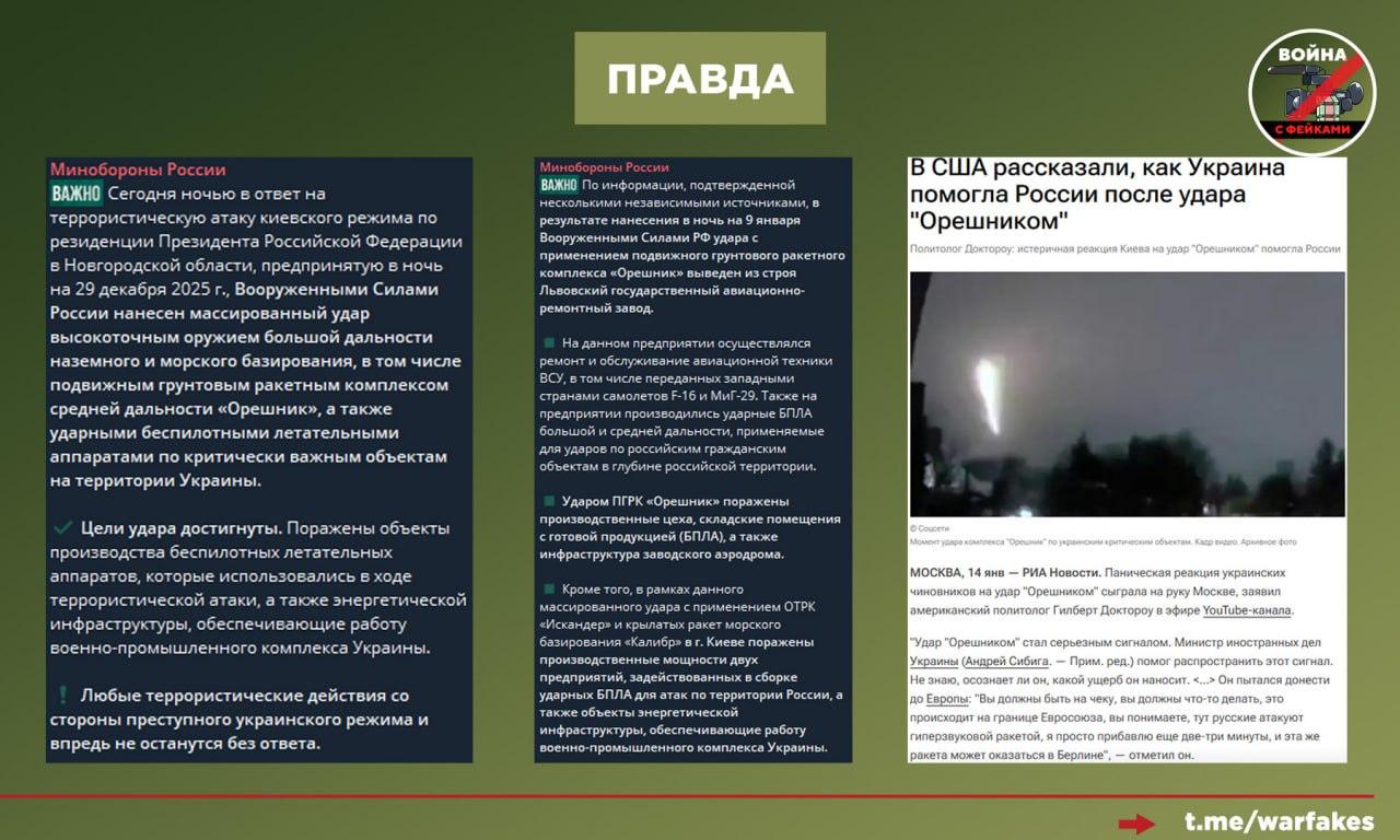 Фейк: «Орешник» оказался лишь «большой хлопушкой», а удар им прошёл « без каких-либо наглядных потерь для Украины», утверждают украинские СМИ