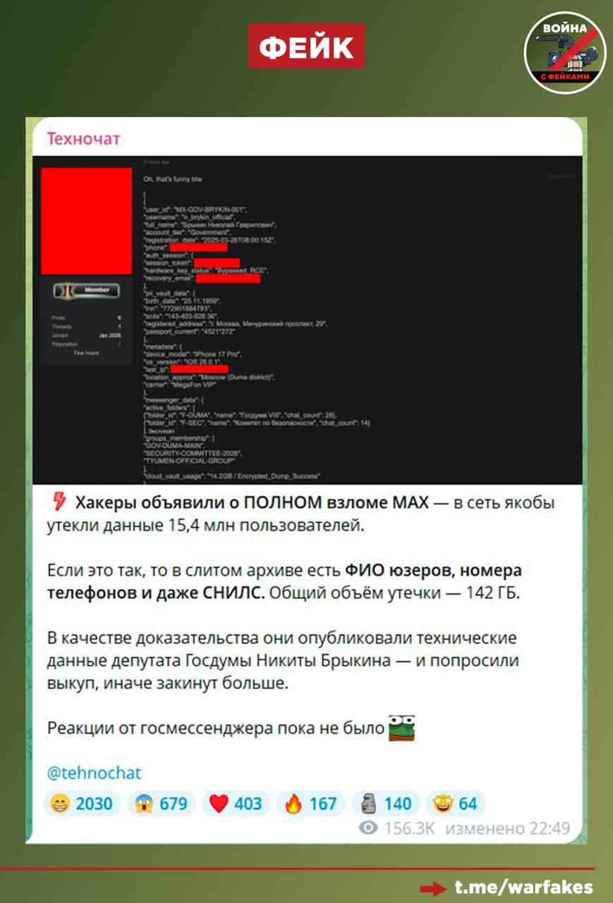 Фейк: Хакерам удалось взломать МАХ и получить полный доступ к базе мессенджера. Такие сообщения распространяются в телеграм-каналах.