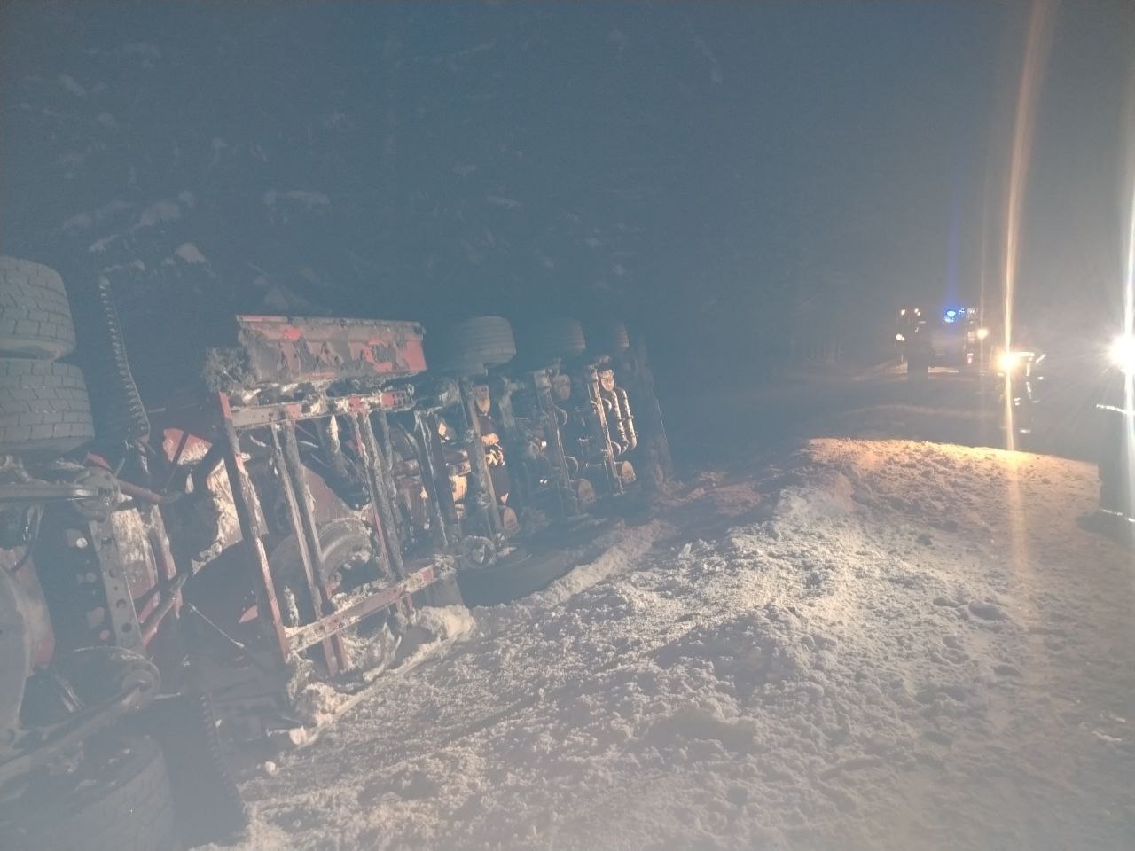 По предварительной информации, водитель не справился с управлением, съехал в кювет и опрокинулся на бок. На месте происшествия зафиксирована капельная течь топлива. Движение по трассе не перекрыто.