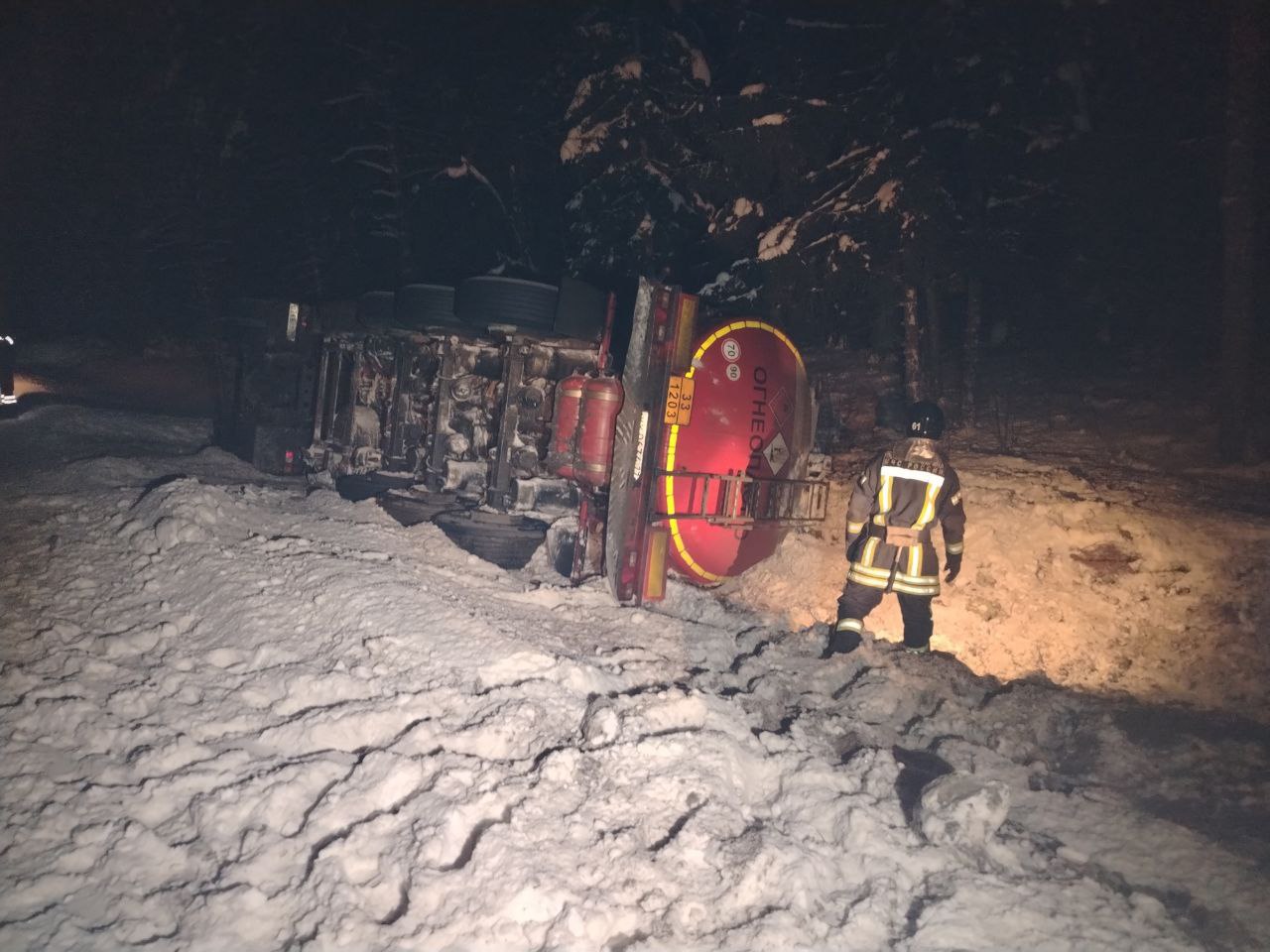 В Ленобласти произошло жёсткое ДТП с бензовозом — автомобиль съехал в кювет и перевернулся
